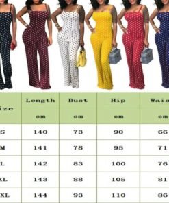 Style:Sexy Polka Dot Sleeveless Jumpsuit Size: S,M,L,XL,2XL,3XL Size Chart(cm) NOTE:It’s Asia size, run much small, please order 1-2size up, or please confirm the measurement before choose size.