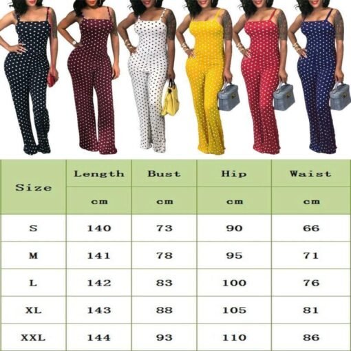Style:Sexy Polka Dot Sleeveless Jumpsuit Size: S,M,L,XL,2XL,3XL Size Chart(cm) NOTE:It’s Asia size, run much small, please order 1-2size up, or please confirm the measurement before choose size.