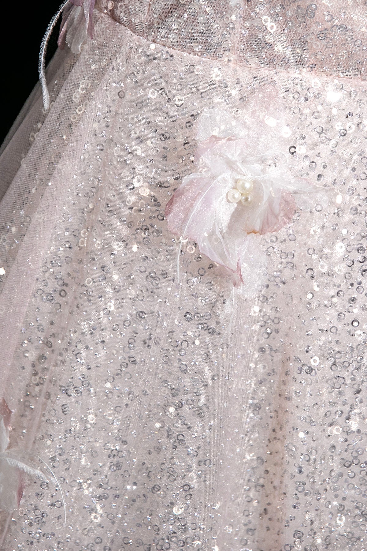 Pink Tulle Sequins Long Prom Dress, A-Line Off the Shoulder Party Dress