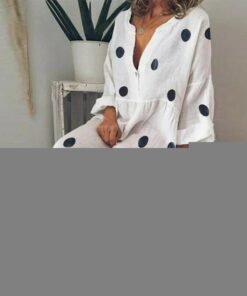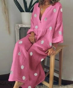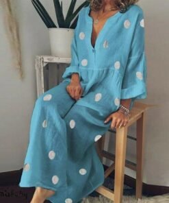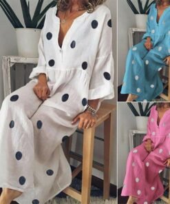 plus size women boho v-neck long shirt dress ladies long sleeve casual summer holiday polka dot loose maxi dress