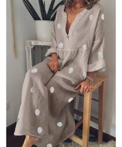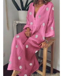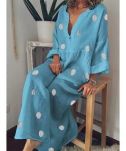 polka dot summer dress casual loose long sleeve bohemian maxi dress women v neck boho beach dresses robe vintage femme