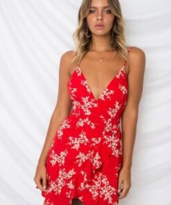 Print Ruffled Wrap Dress Women Strap Mini Sundress