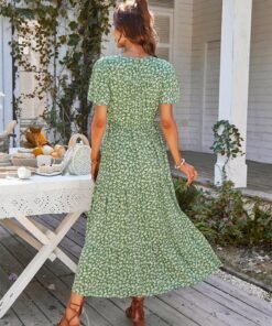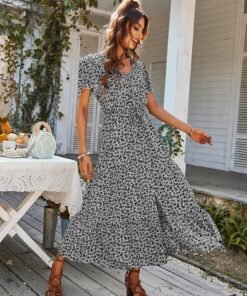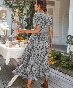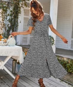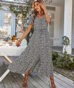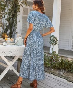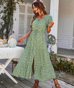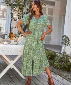 Spring Summer Print Long Dress Women Casual Butterfly Slleve V Neck Button Flroal Dresses For Female Leisure Split Sundress