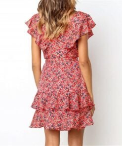 Boho Women Ladies Summer Beach Mini Dress Fashion Floral Holiday V Neck Ruffle Sundress Casual Clothing New