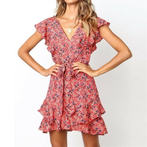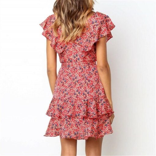 Boho Women Ladies Summer Beach Mini Dress Fashion Floral Holiday V Neck Ruffle Sundress Casual Clothing New