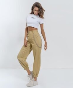pocket chain cargo pants trousers loose high waist tie feet street hipster colorful fashion women clothing