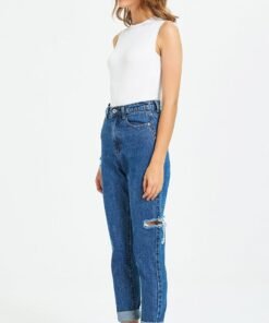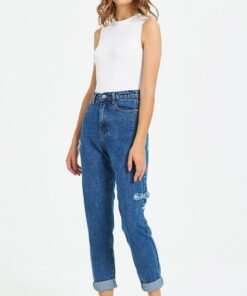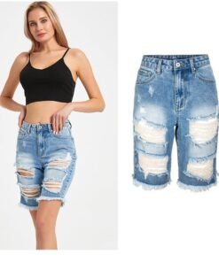 ripped jeans for women knee length straight distressed jeans woman jeans
