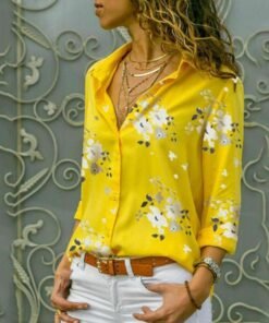 plus size women’s summer floral long sleeve button v-neck shirts ladies casual loose office work blouse tops
