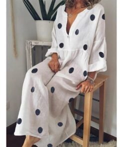 polka dot summer dress casual loose long sleeve bohemian maxi dress women v neck boho beach dresses robe vintage femme