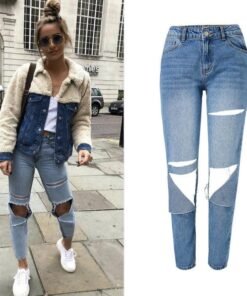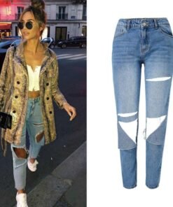 slim hole ripped jeans for women mid waist denim jeans womens pants