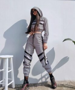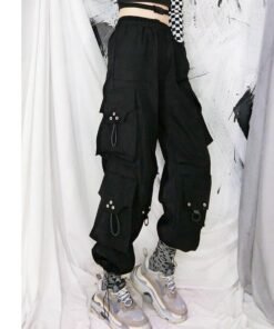 spring autumn fashion drawstring streetwear cargo pants women high waist casual sweatpants big pocket hip hop loose harem pants