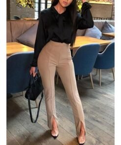split leg slim fit pencil pants summer 2019 solid high waist pants women elegant ol ladies long trousers pantalon femme workwear