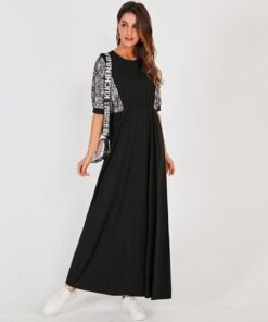 summer new women long dress 2021 black casual fashion snake print stitching elastic waist o-neck half sleeve maxi dresses robe