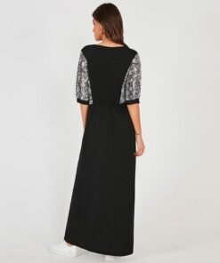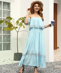 summer sexy backless strapless dress women lace short sleeve solid patchwark ladies sweet loose maxi dress