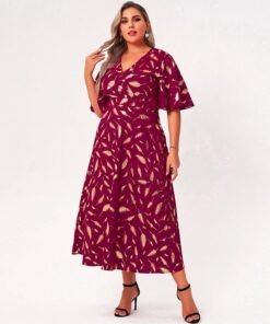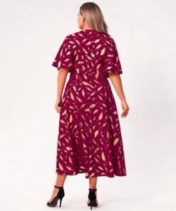 summer maxi dress women plus size 2021 red loose plant floral print slim ruffle short sleeve large holiday style party robes