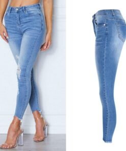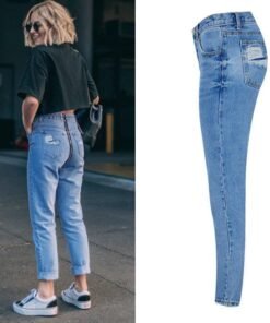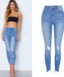 high waist ripped jeans woman summer autumn pencil jeans womens elastic denim pantsnew