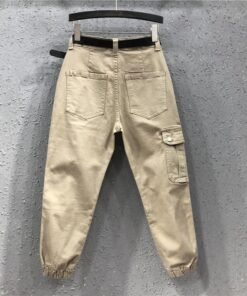 high waist pants sashes pockets office ladies pants women’s spring autumn large size loose waist casual nine-point pant
