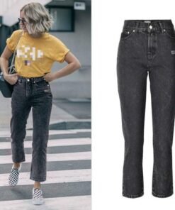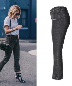 high waist letter print jeans woman spring summer boyfriend jeans for women casual straight denim pants grey