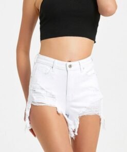 high waist ripped short jeans for women white sexy beach shorts woman pocket denim shorts